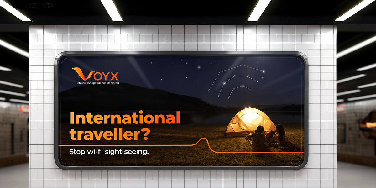 An eSIM brand built for the modern Indian traveller. From naming to positioning and identity, we created Voyx as a tech-driven, emotionally relevant brand that frees users from Wi-Fi dependency and keeps them connected anywhere in the world.
